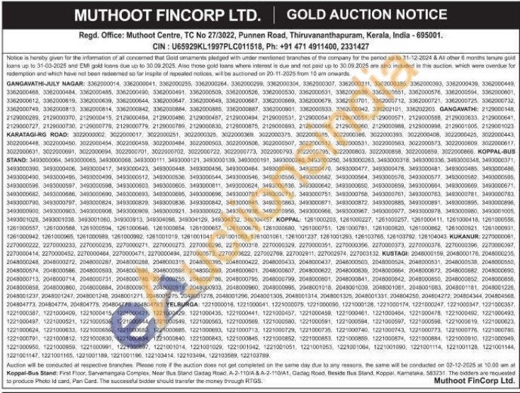 Muthoot Fincorp Ltd Gold Auctions Auction in Thiruvananthapuram