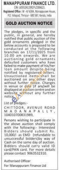 Manappuram Finance Ltd Gold Auctions Auction in Thrissur
