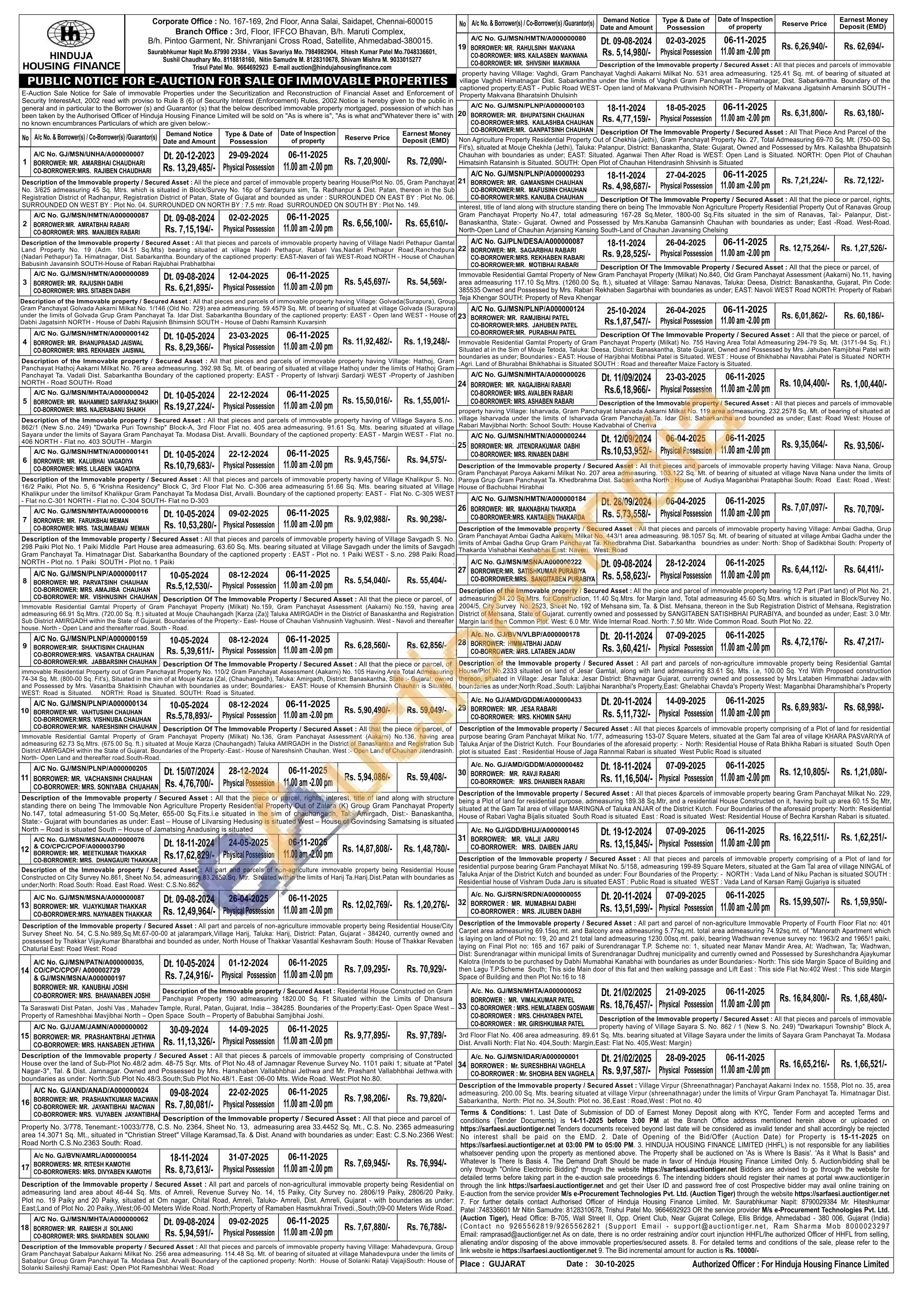 All the piece and parcel of immovable property bearing House/Plot No. 05, Gram Panchayat No. 3/625 admeasuring 45 Sq. Mtrs. which is situated in Block/Survey No. 16p of Sardarpura sim, Ta. Radhanpur & Dist. Patan, thereon in the Sub Registration District of Radhanpur, Registration District of Patan, State of Gujarat and bounded as under: SURROUNDED ON EAST BY: Plot No. 06. SURROUNDED ON WEST BY: Plot No. 04. SURROUNDED ON NORTH BY: 7.5 mtr. Road SURROUNDED ON SOUTH BY: Plot No. 149