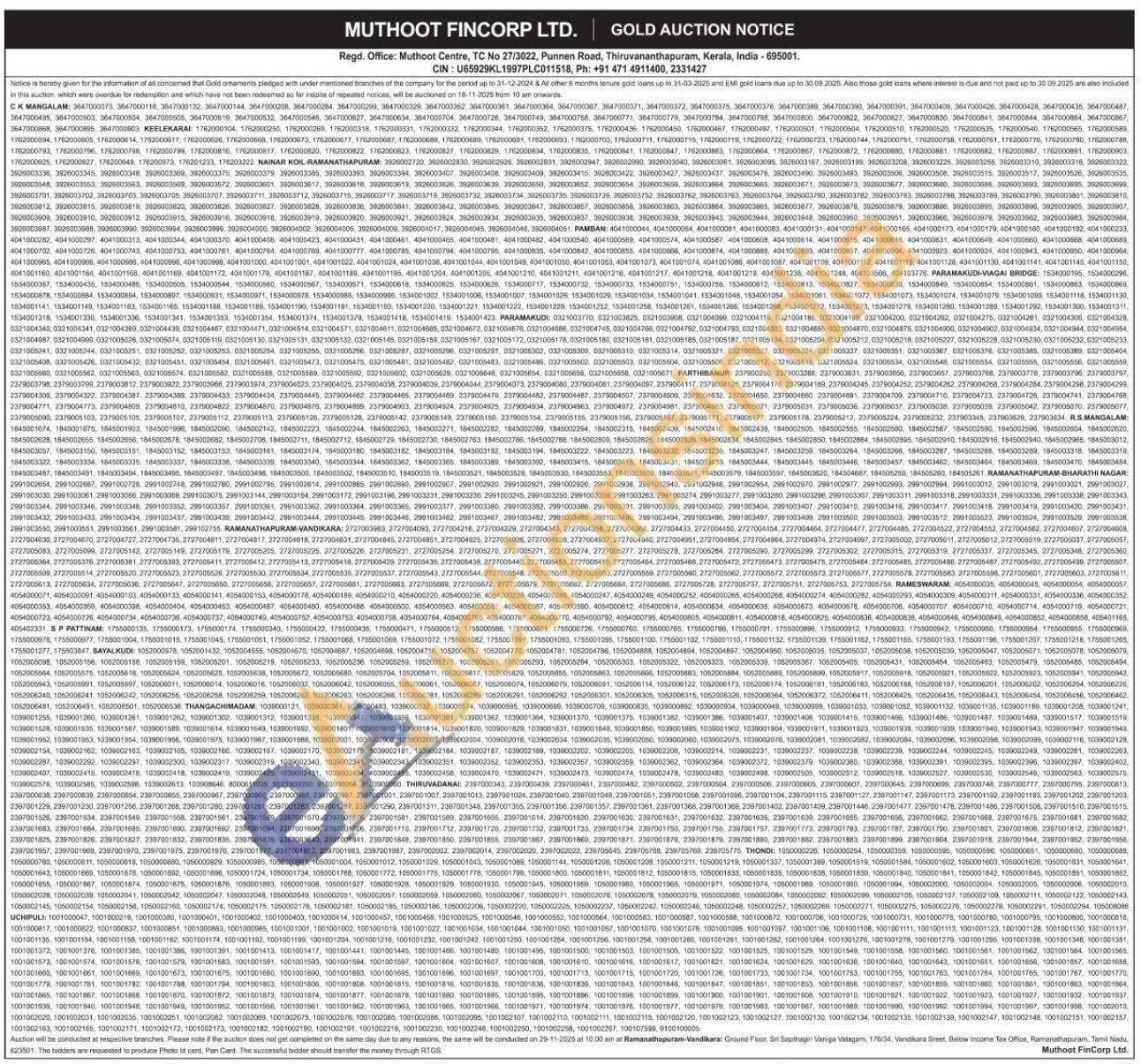 Muthoot Fincorp Ltd Gold Auctions Auction in Thiruvananthapuram