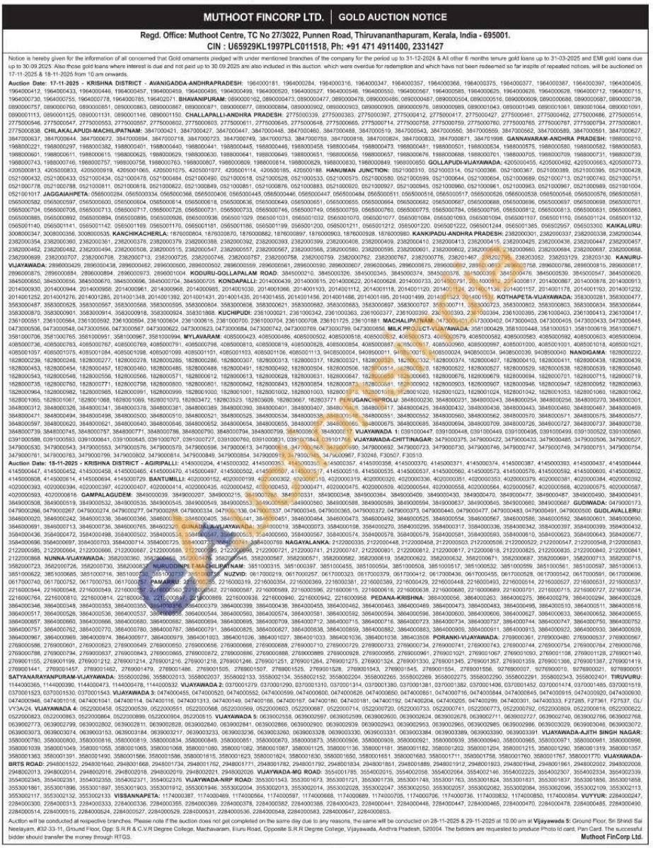 Muthoot Fincorp Ltd Gold Auctions Auction in Thiruvananthapuram