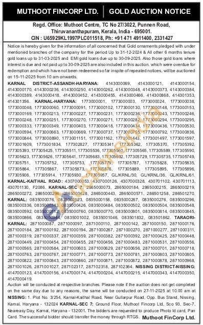 Muthoot Fincorp Ltd Gold Auctions Auction in Thiruvananthapuram