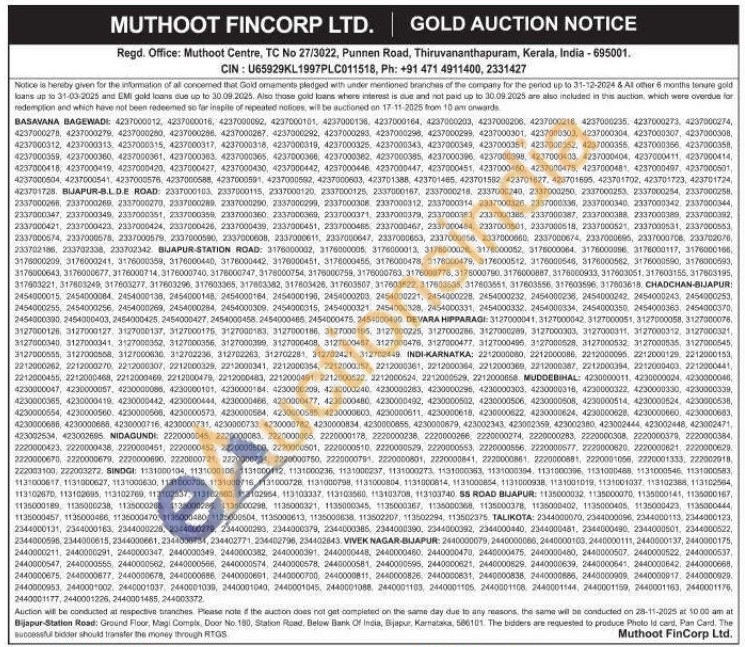 Muthoot Fincorp Ltd Gold Auctions Auction in Thiruvananthapuram