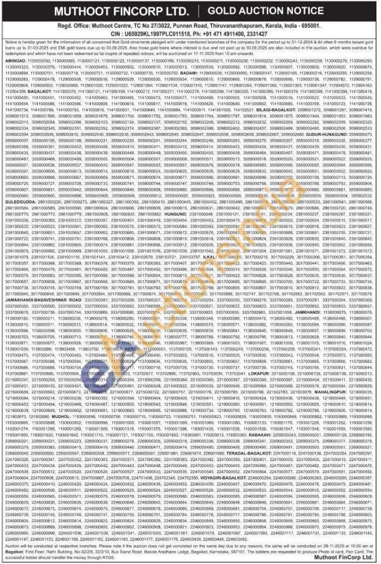 Muthoot Fincorp Ltd Gold Auctions Auction in Thiruvananthapuram