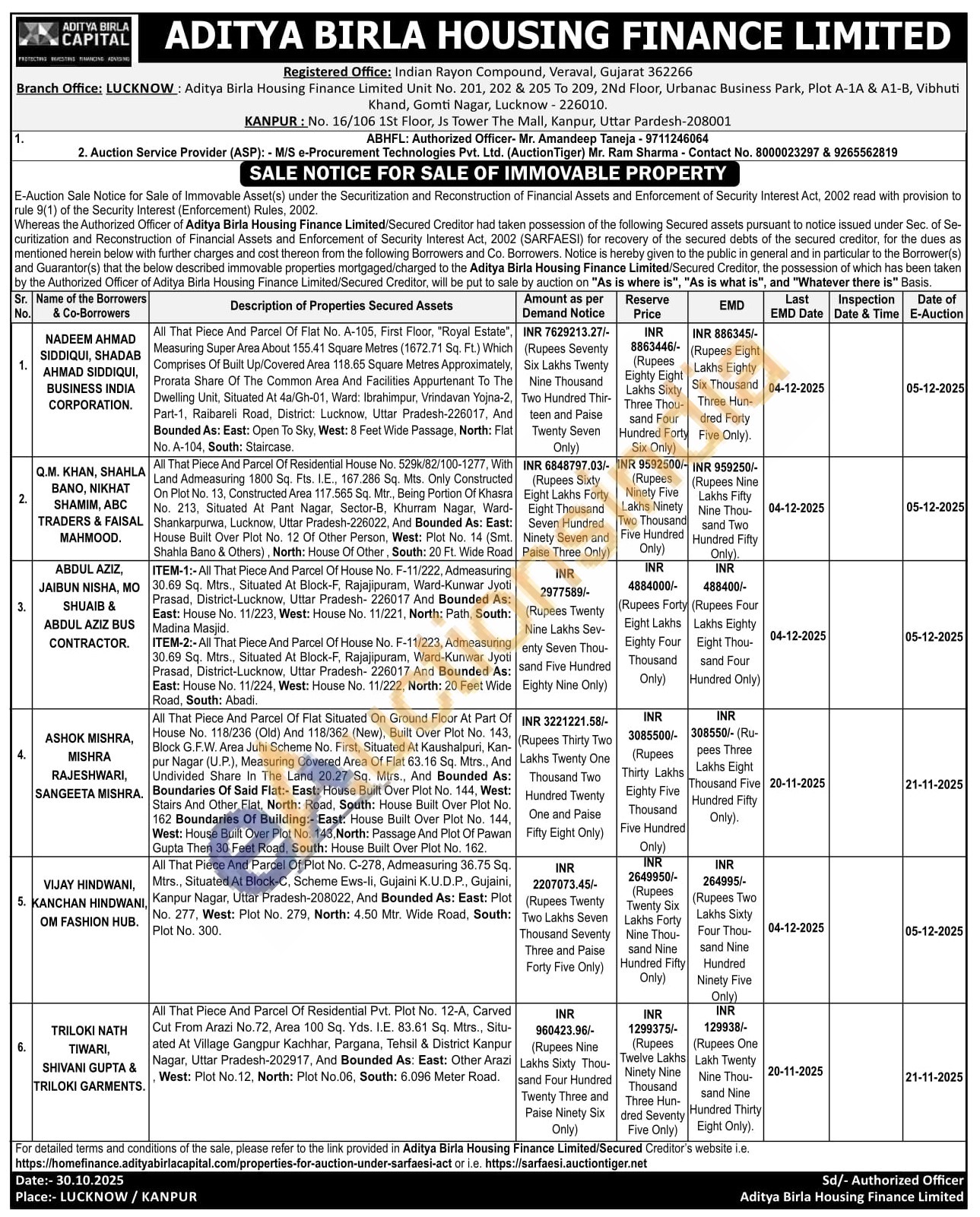 All That Piece And Parcel Of Flat Situated On Ground Floor At Part Of House No. 118/236 (Old) And 118/362 (New), Built Over Plot No. 143, Block G.F.W. Area Juhi Scheme No. First, Situated At Kaushalpuri, Kanpur Nagar (U.P.), Measuring Covered Area Of Flat 63.16 Sq. Mtrs., And Undivided Share In The Land 20.27 Sq. Mtrs., And Bounded As: Boundaries Of Said Flat:- East: House Built Over Plot No. 144, West: Stairs And Other Flat, North: Road, South: House Built Over Plot No. 162 Boundaries Of Building:- East: House Built Over Plot No. 144, West: House Built Over Plot No. 143, North: Passage And Plot Of Pawan Gupta Then 30 Feet Road, South: House Built Over Plot No. 162