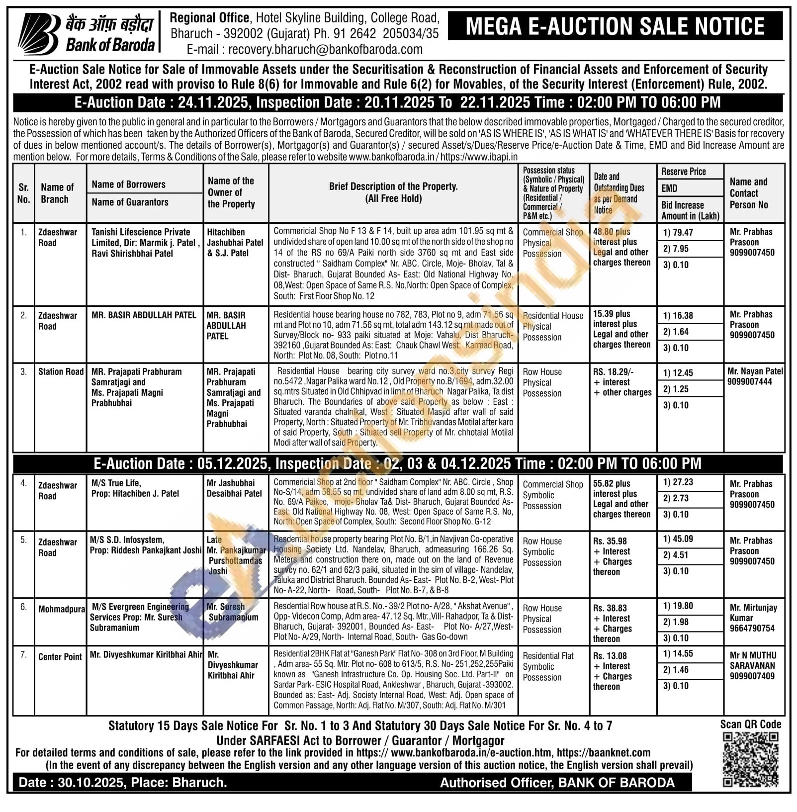 Commericial Shop No F 13 & F 14, built up area adm 101.95 sq mt & undivided share of open land 10.00 sq mt of the north side of the shop no 14 of the RS no 69/A Paiki north side 3760 sq mt and East side constructed Saidham Complex" Nr. ABC. Circle, Moje- Bholav, Tal & Dist- Bharuch, Gujarat Bounded As- East: Old National Highway No. 08, West: Open Space of Same R.S. No, North: Open Space of Complex, South: First Floor Shop No. 12