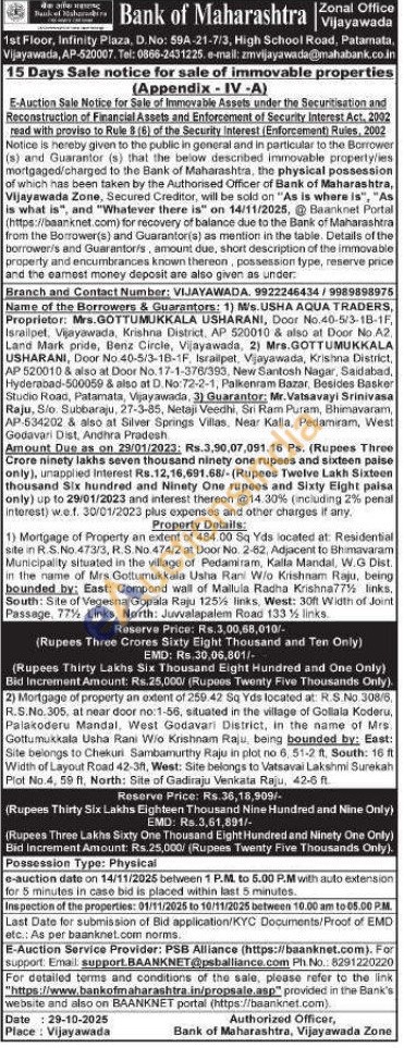 Property Details: 2) Mortgage of property an extent of 259.42 Sq Yds located at: R.S.No.308/6, R.S.No.305, at near door no:1-56, situated in the village of Gollala Koderu, Palakoderu Mandal, West Godavari District, in the name of Mrs. Gottumukkala Usha Rani Wio Krishnam Raju, being bounded by: East: Site belongs to Chekuri Sambamurthy Raju in plot no 6, 51-2 ft, South: 16 ft Width of Layout Road 42-3ft, West: Site belongs to Vatsavai Lakshmi Surekah Plot No.4, 59 ft, North: Site of Gadiraju Venkata Raju, 42-6 ft