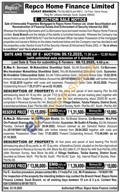 All that piece and parcel of land bearing Plot No.63 admeasuring about 48 sq. yards, ie, 40.15 sq.mtrs. of Aaradhna Orchid, situated on the Non-Agricultural land comprised in Revenue Survey No.344, Block No.402 (after K.J.P. Block No.448/ Sub-Plot No.2/63) (after Revision Survey, New Block No.448) of Village Haldharu, Taluka Kamrej, District Surat, bounded as follows; North: Plot No.64, South: Plot No.62, East: Adj. internal Road of Society, West: Plot No.66.