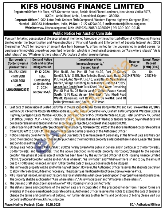 Contact Ph.No.: +91 22 61796400, E-mail: contact@kifshousing.com