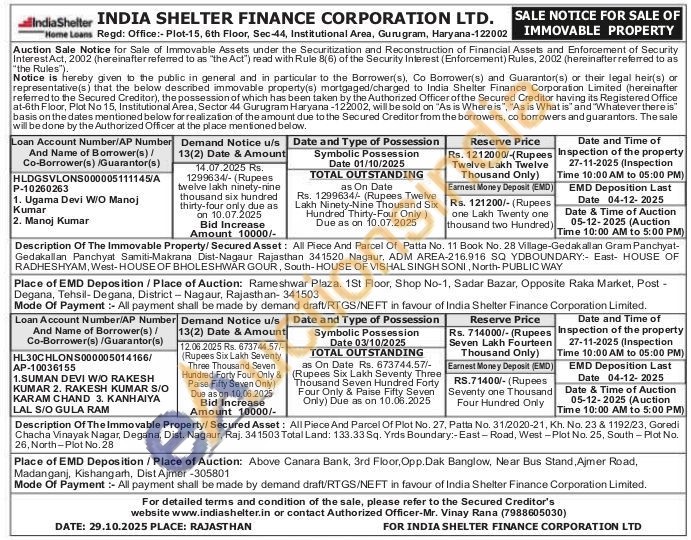 All Piece And Parcel Of Plot No. 27, Patta No. 31/2020-21, Kh. No. 23 & 1192/23, Goredi Chacha Vinayak Nagar, Degana, Dist, Nagaur, Raj, 34 1503 Total Land: 133.33 Sq. Yrds Boundary:-East-Road, West-Plot No. 25, South Plot No. 26. North-Plot No. 28