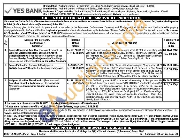 Flat no. 202 built up area 34-335 sqmtrs.and admeasuring 28.24 carpet area On 2nd floor of the low rise building Named "MARUTI PRIME' constructed of sub Plot no. 1340-C over land admeasuring 133-77 sq.mtrs. of Plot no. 30, Revenue Survey no. 391 Paiki of area known as "Geeta Nagar" of Revenue Survey ward no. 7 City Survey no. 6079, T.P. scheme no. 04 (Rajkot), FP. no. 1340 Moje village: Rajkot, Subdistrict and District: Rajkot, and bounded as under: East: F.P. no. 1353, West: Lift, stair, Passege after Flat no. 201, North: F.P. no. 1340 Paiki Sub Plot no. 1340-B, South: F.P. no. 1341.