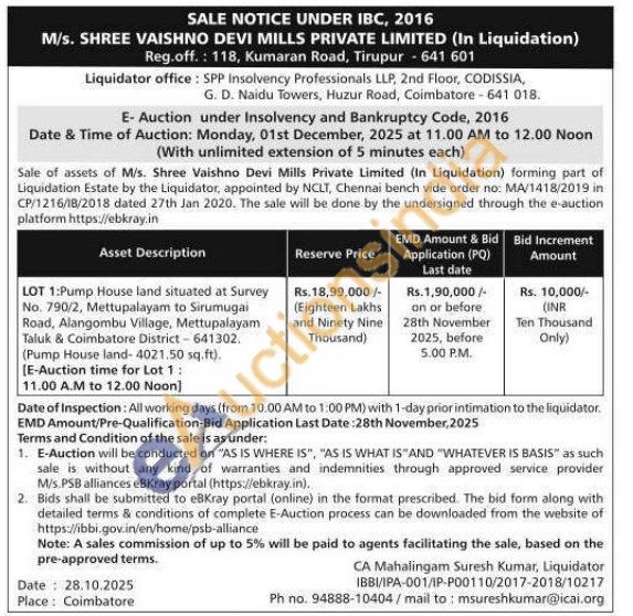 LOT 1:Pump House land situated at Survey No. 790/2, Mettupalayam to Sirumugai Road, Alangombu Village, Mettupalayam Taluk & Coimbatore District-641302. (Pump House land-4021.50 sq.ft).
