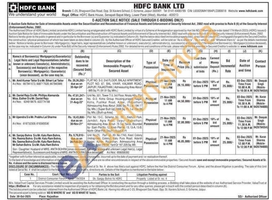 Unit No. 301, Tower T-3, 3rd Floor, Nirala Hills Plot No. G-2, Kotra Group Housing pragati Nagar Kotra, Pushkar Road, Ajmer, (Rajasthan) Admeasuring Area About: 2090 Sq. Filia. 194.17 Sq. Mts.) (Super Built Up) 1668 Sq. Ft. (i.e. 154.06 Sq. Mis) Bull-up Area