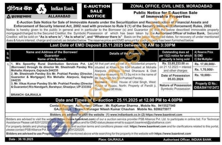 All that part and parcel of a Residential property situated at Khasra No 634 situated at Mohalla Atarpura, Gajraula, Tehsil Dhanaura & Distt Amroha measuring 70.73 Sq mt in in the name of Mr. Seshnath S/o Shri Prahlad Pandey.
