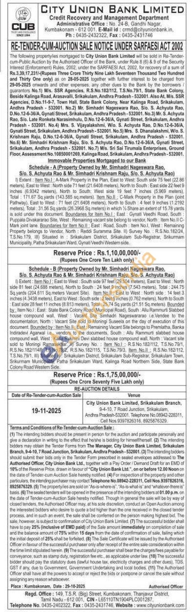 A-Mark Property in the Plan, East to West South side 75 feet (22.86 meters). East to West: North side 71 feet (21.6408 meters), North to South East side 22 feet 9 inches (6.9342 meters). North to South West side 19 feet 7 inches (5.909 meters), Total 171.67 Sq yards (143.585 sq meters) Item No.ll C-Mark Property in the Plan joint Pathway), East to West 71 feet (21 6408 meters), North to South 4 feet 9 inches (1.2192 meters), Total: 31.56 Sq yards (26.3968 Sq meters) in which % Share an extent of 15.78 yards is sold under this document. Boundaries for Item No.1 East: Gynati Veedhs Road, South: Puppala Divakararao Site, West: Remaining vacant site belong to vendor, North Item No.Il C Mark joint lane. Boundaries for Item No East: Road, South Item No.1, West: Remaining Property belongs to Vendor, North: Reddi Suramma Site (1) Survey No R.S.No. 182/24, T.S.No. 179, III) Situated in Srikakulam District, Srikakulam Sub-Registrar, Sikurmam Municipality, Patha Srikakulam Ward, Gynati Veedhi Westem side