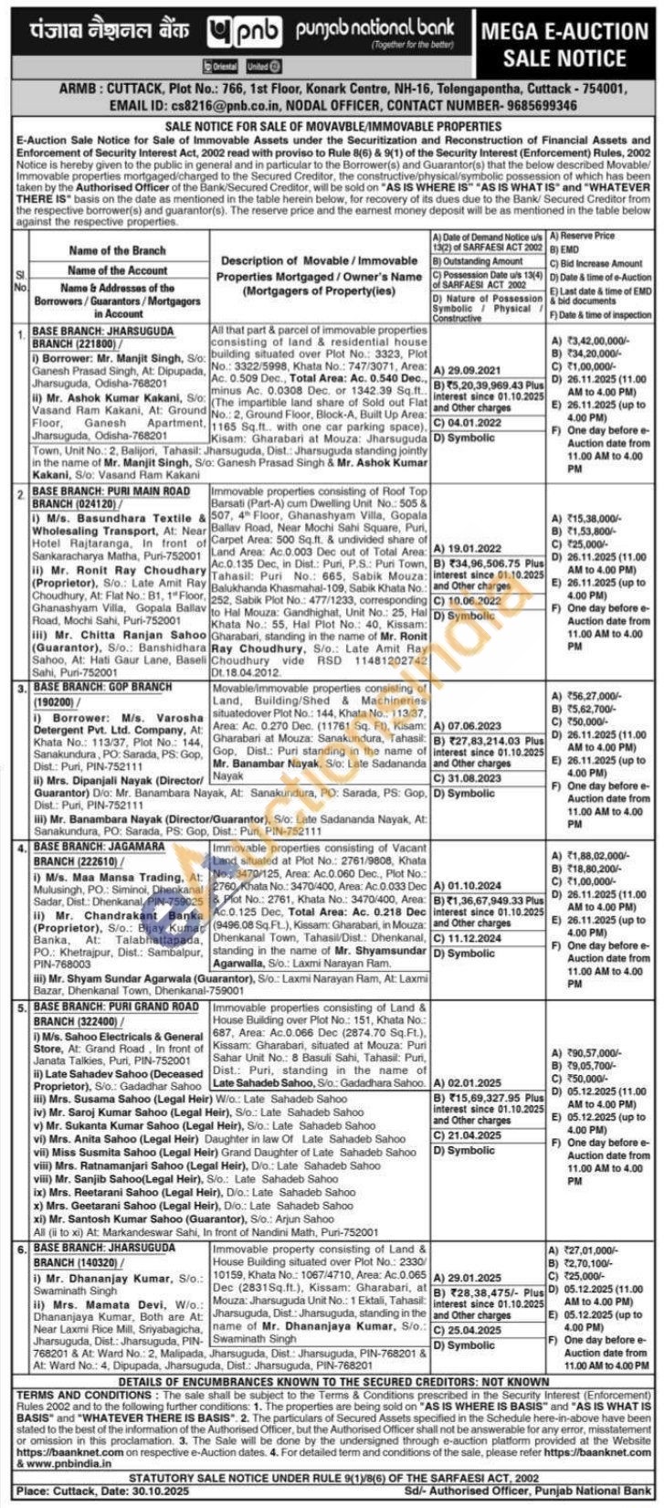 Immovable properties consisting of Vacant Land situated at Plot No.: 2761/9808, Khata No.: 3470/125, Area: Ac.0.060 Dec., Plot No.: 2760, Khata No.: 3470/400, Area: Ac.0.033 Dec & Plot No.: 2761, Khata No.: 3470/400, Area: Ac.0.125 Dec, Total Area: Ac. 0.218 Dec (9496.08 Sq.Ft.), Kissam: Gharabari, in Mouza: Dhenkanal Town, Tahasil/Dist: Dhenkanal, standing in the name of Mr. Shyamsundar Agarwalla, S/o.: Laxmi Narayan Ram