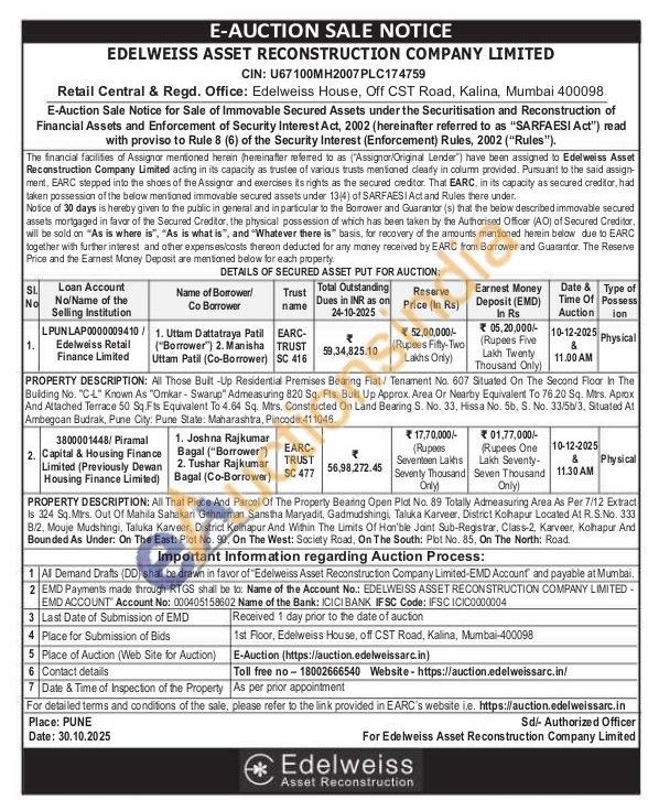 PROPERTY DESCRIPTION: All That Piece And Parcel Of The Property Bearing Open Plot No. 89 Totally Admeasuring Area As Per 7/12 Extract Is 324 Sq.Mirs. Out Of Mahila Sahakari Grihnimman Sanstha Maryadit, Gadmudshingi, Taluka Karveer, District Kolhapur Located At R.S.No. 333 B/2, Mouje Mudshingi, Taluka Karveer, District Kolhapur And Within The Limits Of Hon'ble Joint Sub-Registrar, Class-2, Karveer, Kolhapur And Bounded As Under: On The East: Plot No. 90, On The West: Society Road, On The South: Plot No. 85. On The North: Road.