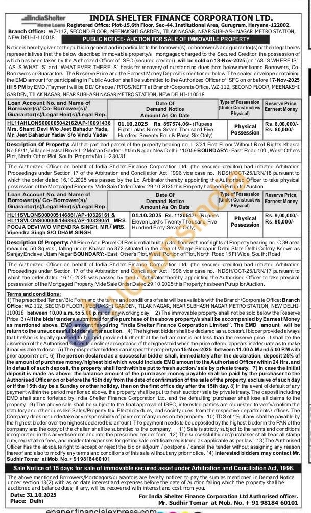 Description Of Property: All Piece And Parcel Of Residential built up 3rd floor with roof rights of Property bearing no. C 39 area meauring 50 Sq yds., falling under Khasra no 372 situated in the area of Village Bindapur Delhi State Delhi Colony Known as Sanjay Enclave Uttam Nagar BOUNDARY: East: Other's Plot, West: Partion of Plot, North: Road 15 Ft Wide, South: Road