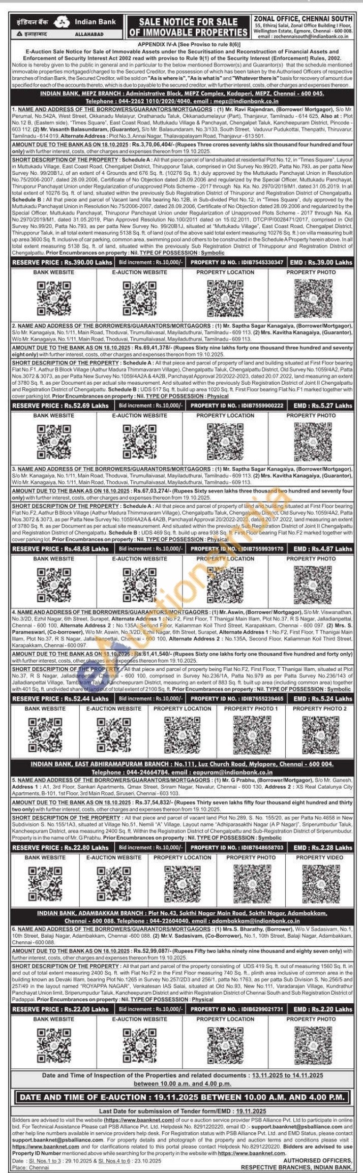 SHORT DESCRIPTION OF THE PROPERTY: All that piece and parcel of vacant land Plot No.289. S. No. 155/20, as per Patta No.4658 in New Subdivision S. No. 155/1A3, situated at Village No.51, Nemili "A" Village, Layout name "Adhiparasakthi Nagar (AP Nagar)", Sriperumbudur Taluk, Kancheepuram District, area measuring 2400 Sq. ft. Within the Registration District of Chengalpattu and Sub-Registration District of Sriperumbudur. Property is in the name of Mr. G Prabhu. Prior Encumbrances on property: Nil. TYPE OF POSSESSION: Symbolic