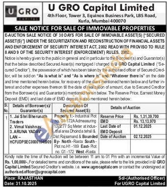 Property 1:- Industrial Plot no. G1-172A Admeasuring 1372.77 Sq Meter at indus-trial area Dhoinda tehsil & Dist Rajsamand & Bounded By- North-Rasta South-Plot no.H1-189 East- Plot no. G1-172 West-Rasta