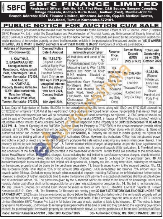 All that piece and parcel of the Property No 152500301800100235/172/81, Measuring East to West 12.192 9.144 meters, Situated at meters and North to South Maavathuru Village, Maavathuru Gram Panchayat, Koratagere Block, Tumkuru District and bounded on the East Road, West- Survey Land, North Site belongs to Chandrappa, South House belongs to Alumelamma.