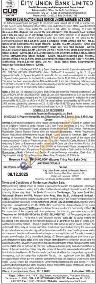 Immovable Properties Mortgaged to our Bank : SCHEDULE-C Property Owned By Mrs.S.Booma Devi. Mr.S.Suresh Babu & Mr.5.Jeya Deepan