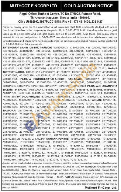 Muthoot Fincorp Ltd Gold Auctions Auction in Patiala