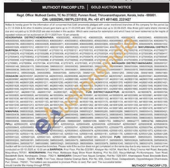 Muthoot Fincorp Ltd Gold Auctions Auction in Nayagarh