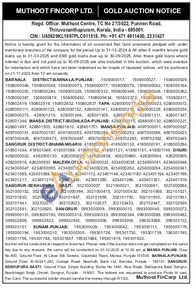 Muthoot Fincorp Ltd Gold Auctions Auction in Thiruvananthapuram