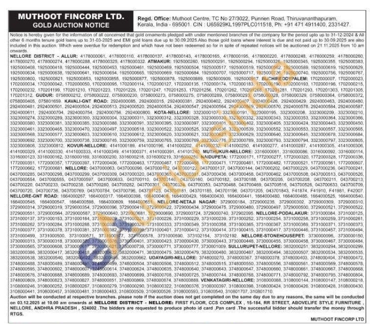 Muthoot Fincorp Ltd Gold Auctions Auction in Nellore
