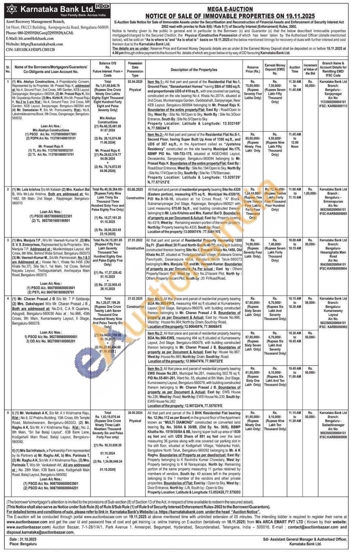 All that part and parcel of residential property bearing Site No.4320 (Eastern portion), measuring 675 aq ft. Municipal No.4320/16, PID No.9-18-16, situated at 1st Cross Road, "A" Block. Subramanyanagar 2nd Stage, Rajainagar, Bengaluru-560021 with Land measuring 675.00 Sqft, and building constructed therion. belonging to Mr. Lola Krishna and Mrs. Kasturi Bai D. Boundaries of property as per Document & Actual East by: Property bearing No.4319, West by: Remaining westem portion of the same property. North by: Property bearing No. 4333, South by: Road Location of the property: 13.005474'N: 77.558416 E