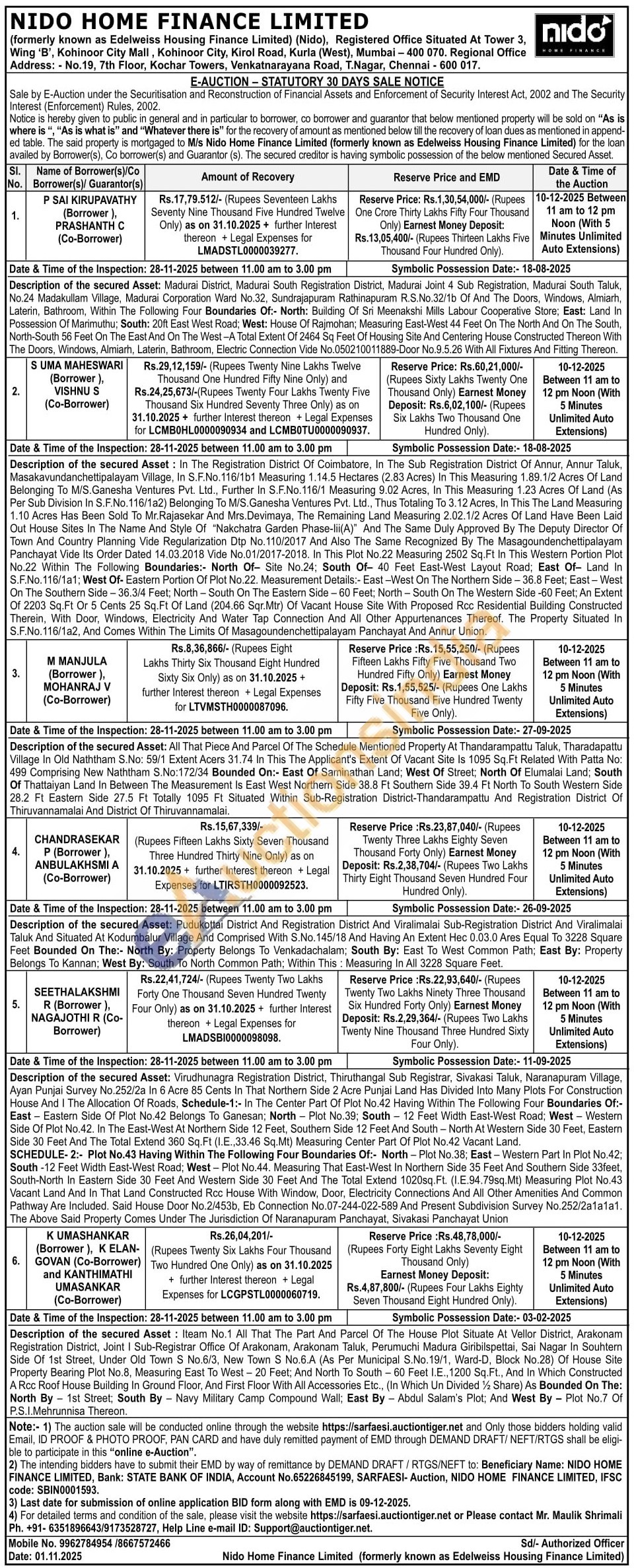 Description of the secured Asset: Virudhunagra Registration District, Thiruthangal Sub Registrar, Sivakasi Taluk, Naranapuram Village, Ayan Punjai Survey No.252/2a In 6 Acre 85 Cents In That Northern Side 2 Acre Punjai Land Has Divided Into Many Plots For Construction House And I The Allocation Of Roads, Schedule-1:- In The Center Part Of Plot No.42 Having Within The Following Four Boundaries Of:-East Eastern Side Of Plot No.42 Belongs To Ganesan; North Plot No.39; South- 12 Feet Width East-West Road; West Western Side Of Plot No.42. In The East-West At Northern Side 12 Feet, Southern Side 12 Feet And South - North At Western Side 30 Feet, Eastern Side 30 Feet And The Total Extend 360 Sq.Ft (I.E.,33.46 Sq.Mt) Measuring Center Part Of Plot No.42 Vacant Land. SCHEDULE-2:- Plot No.43 Having Within The Following Four Boundaries Of: North - Plot No.38; East - Western Part In Plot No.42; South-12 Feet Width East-West Road; West - Plot No.44. Measuring That East-West In Northern Side 35 Feet And Southern Side 33feet, South-North In Eastern Side 30 Feet And Western Side 30 Feet And The Total Extend 1020sq.Ft. (I.E.94.79sq.Mt) Measuring Plot No.43 Vacant Land And In That Land Constructed Rcc House With Window, Door, Electricity Connections And All Other Amenities And Common Pathway Are Included. Said House Door No.2/453b, Eb Connection No.07-244-022-589 And Present Subdivision Survey No.252/2a1a1a1. The Above Said Property Comes Under The Jurisdiction Of Naranapuram Panchayat, Sivakasi Panchayat Union