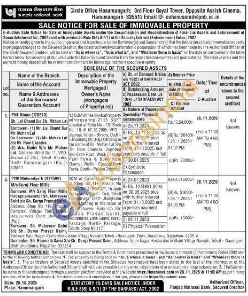 1.) EQM of Residential Property Lalladmeasuring 2125 SQFT situated at Patta No-19. Book No-10 dt 07.12.2009, VPD-Jhansal, Tehse-Bhadra, Distt Hanumangarh (Ra) standing in the name of Sh. Mohan Lal Sie Sh. Ram Chandra Bounded VPD-By:-East-Road West-Chandgi Ram Punia & Budh Ram Chamar, North-Chandgi Ram Punia, South-Pawan Chhimpa
