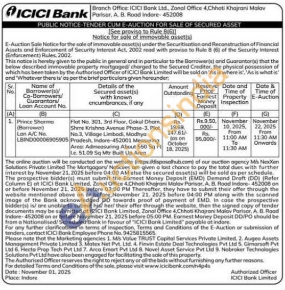 Shre Krishno Avenue Phase-3, Plot No.3, Village Limbodi, Madhya Flat No. 301, 3rd Floor, Gokul Dham. Pradesh, Indore-452001 Measuring Area: Admeasuring About 550 Sq Ft Le. 51.09 Sq Mtr Built Up Area