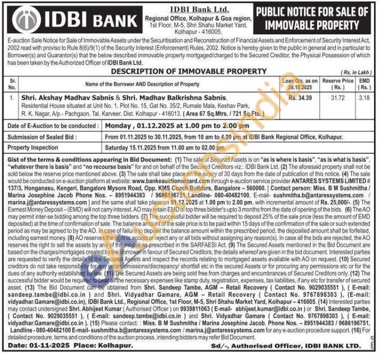 Residential House situated at Unit No. 1, Plot No. 15, Gat No. 35/2, Rumale Mala, Keshav Park, R. K. Nagar, Alp.- Pachgaon, Tal. Karveer, Dist. Kolhapur-416013. (Area 67 Sq.Mtrs./721 Sq.Fts.)
