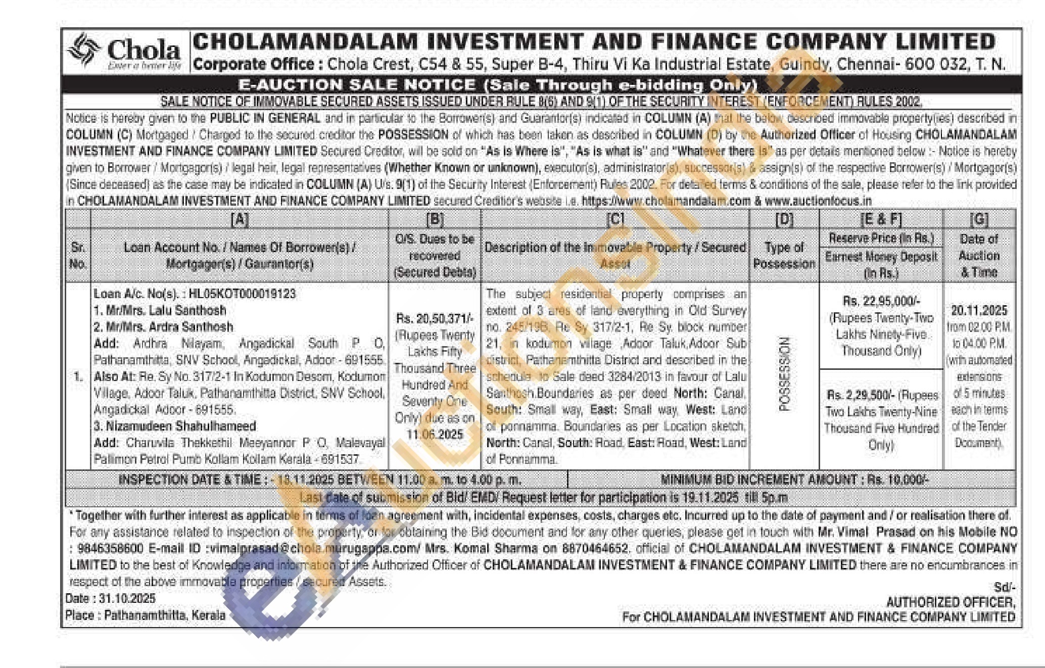 The subject residential property comprises an extent of 3 ares of land everything in Old Survey no. 245/19B, Re Sy 317/2-1, Re Sy block number 21, in kodumon village Adoor Taluk, Adoor Sub district, Pathanamthitta District and described in the schedule to Sale deed 3284/2013 in favour of Lalu Santhosh Boundaries as per deed North: Canal, South: Small way, East: Small way, West: Land of ponnamma. Boundaries as per Location sketch, North: Canal, South: Road, East: Road, West: Land of Ponnamma