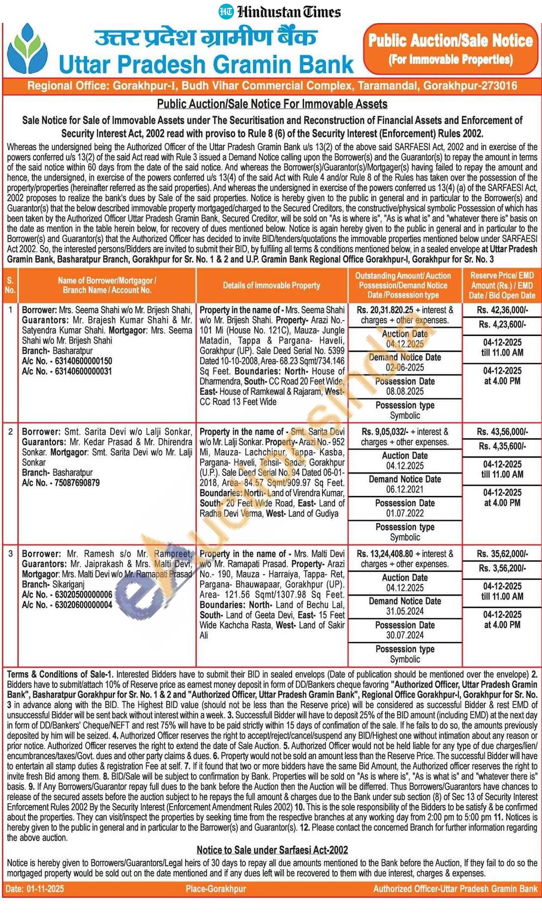 Property in the name of - Mrs. Seema Shahi w/o Mr. Brijesh Shahi. Property- Arazi No.-101 Mi (House No. 121C), Mauza- Jungle Matadin, Tappa & Pargana- Haveli, Gorakhpur (UP). Sale Deed Serial No. 5399 Dated 10-10-2008, Area-68.23 Sqmt/734.146 Sq Feet. Boundaries: North House of Dharmendra, South- CC Road 20 Feet Wide, East- House of Ramkewal & Rajaram, West-CC Road 13 Feet Wide