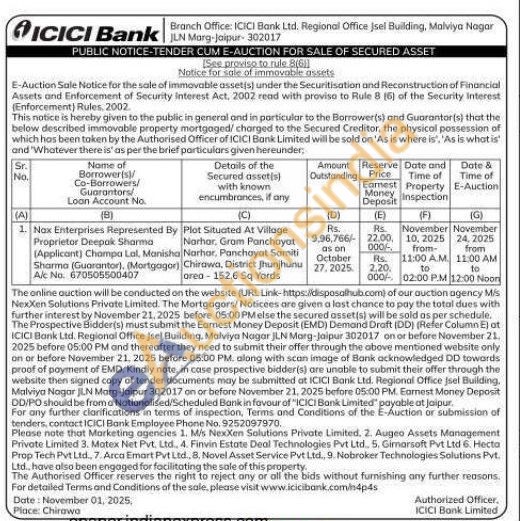 Plot Situated At Village Narhar. Gram Panchayat Narhar, Panchayat Samiti Chirawa, District Jhunjhunu orea-152.6 Sq Yords