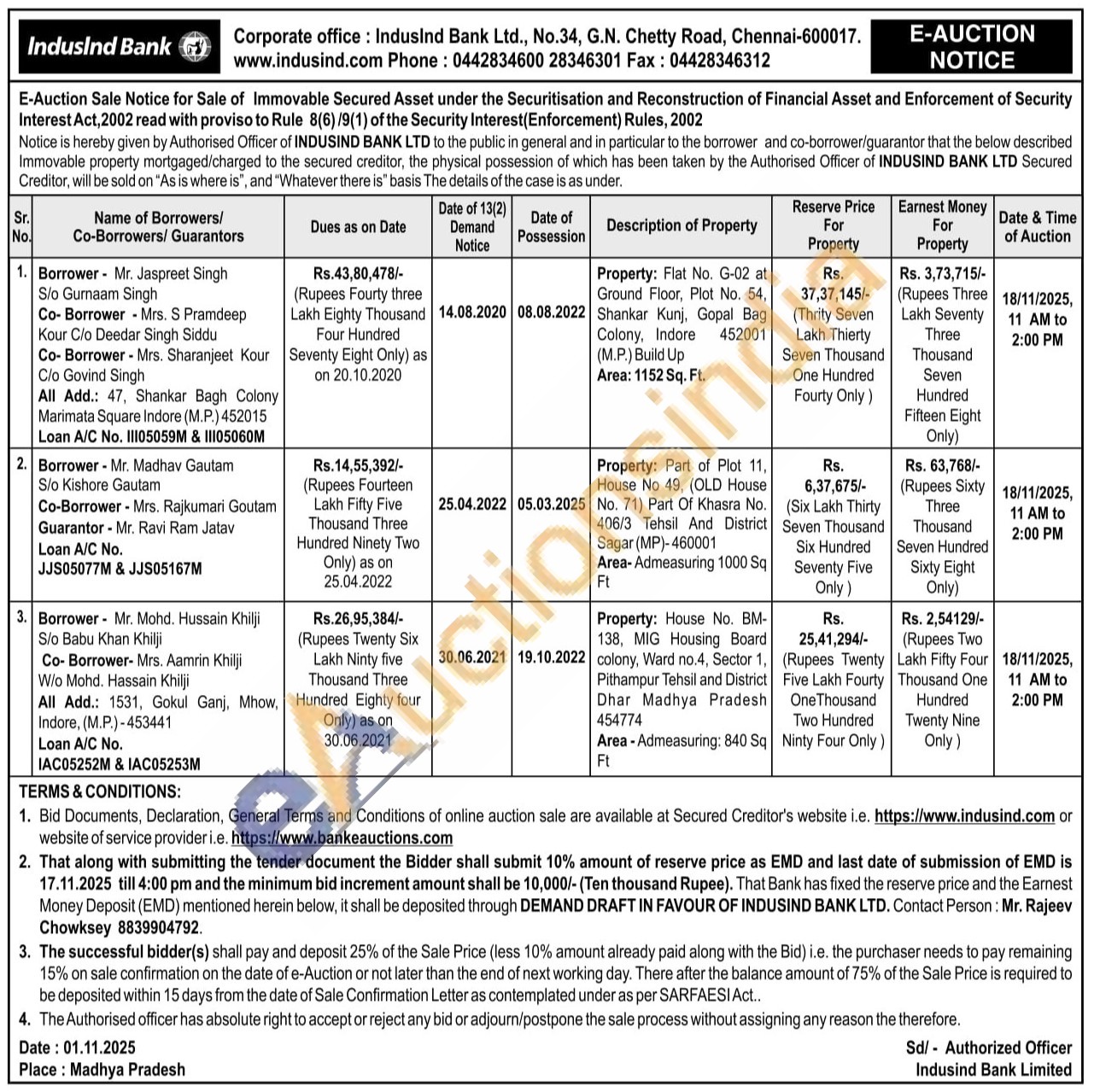 Property: Flat No. G-02 at Ground Floor, Plot No. 54, Shankar Kunj, Gopal Bag Colony, Indore 452001 (M.P.) Build Up Area: 1152 Sq. Ft