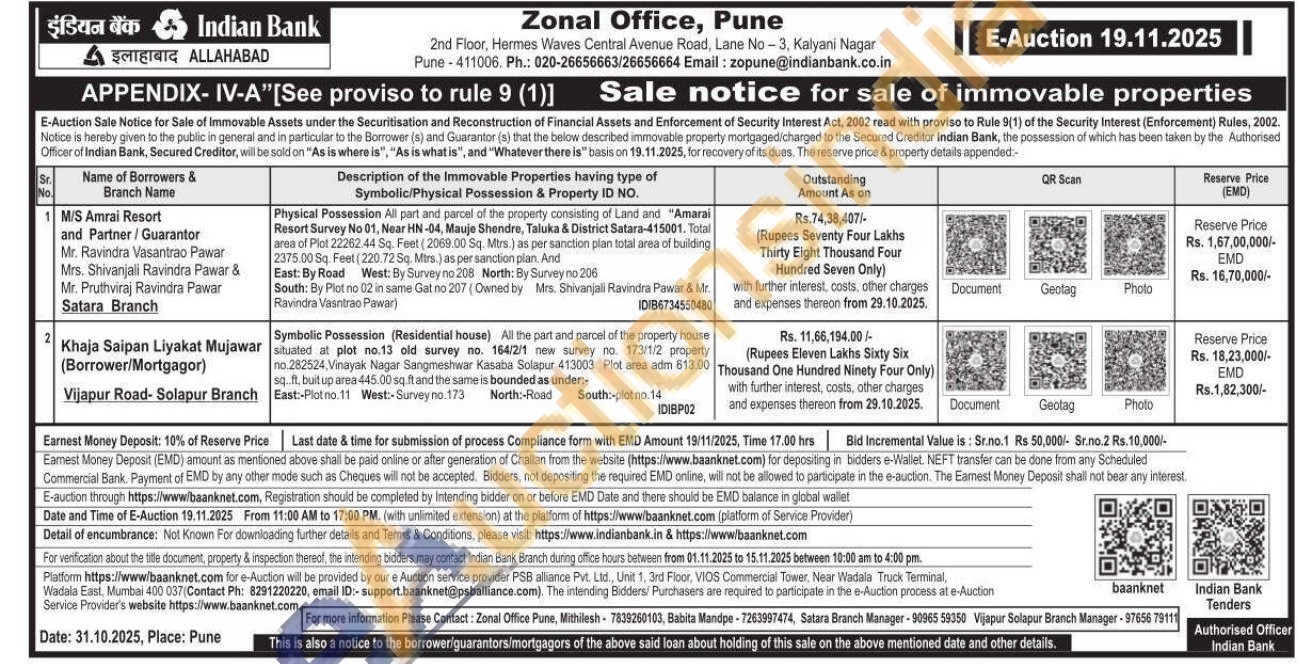 Physical Possession All part and parcel of the property consisting of Land and "Amarai Resort Survey No 01, Near HN-04, Mauje Shendre, Taluka & District Satara-415001. Total area of Plot 22262.44 Sq. Feet (2069.00 Sq. Mtrs) as per sanction plan total area of bulding 2375.00 Sq. Feet (220.72 Sq. Mirs.) as per sanction plan. And East: By Road West: By Survey no 208 North: By Survey no 206 South: By Plot no 02 in same Gat no 207 (Owned by Mrs. Shivanjali Ravindra Pawar & Mr. Ravindra Vasntrao Pawar)