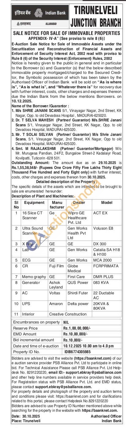 The specific details of the assets which are intended to be brought to sale are enumerated hereunder: Description of Plant and Machineries