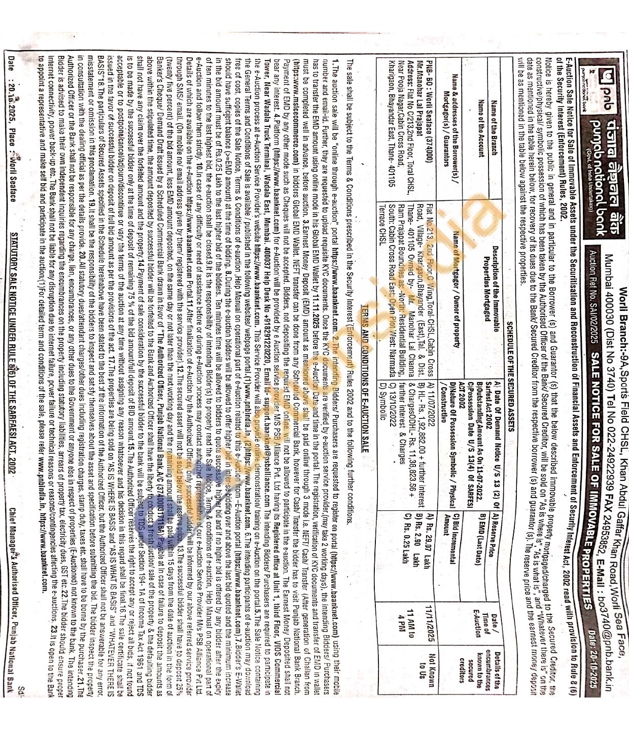 Flat No.213, 2nd Floor, C Wing, Toral-CHSL, Cabin Cross Road, Village- Kharigaon, Bhayander (East), Tal. & Dist. Thane-401105 Owned by Mr. Manohar Lal Channa Ram Prajapat Boundries as: -North: Residential Building, South: Cabin Cross Road East: Open Plot West: Narmada Terrace CHSL