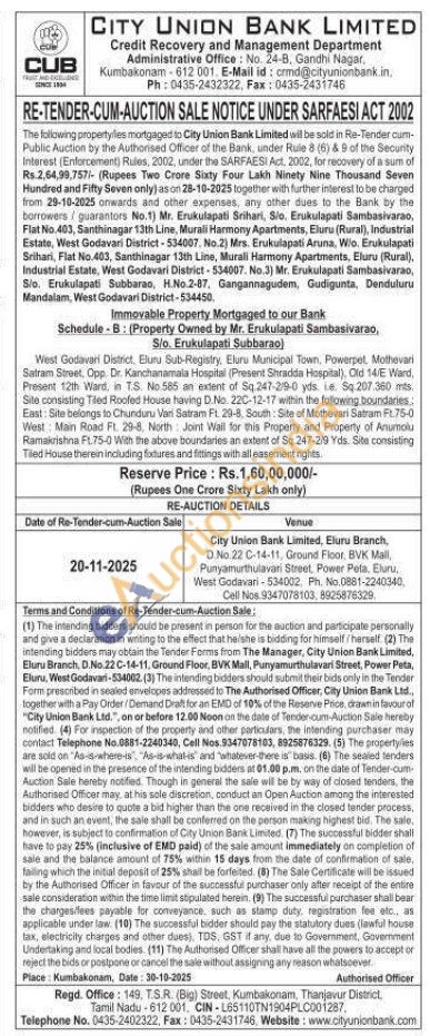 West Godavari District, Eluru Sub-Registry, Eluru Municipal Town, Powerpet, Mothevari Satram Street, Opp. Dr. Kanchanamala Hospital (Present Shradda Hospital), Old 14/E Ward, Present 12th Ward, in TS. No 585 an extent of Sq.247-2/9-0 yds le Sq.207.360 mts. Site consisting Tiled Roofed House having D.No. 220-12-17 within the following boundaries. East: Site belongs to Chunduru Vari Satram Ft. 29-8, South Site of Mothevari Satram Ft.75-0 West Main Road Ft. 29-8, North Joint Wall for this Property and Property of Anumolu Ramakrishna Ft.75-0 With the above boundaries an extent of Sq 247-2/9 Yds. Site consisting Tiled House therein including fixtures and fittings with all easement rights