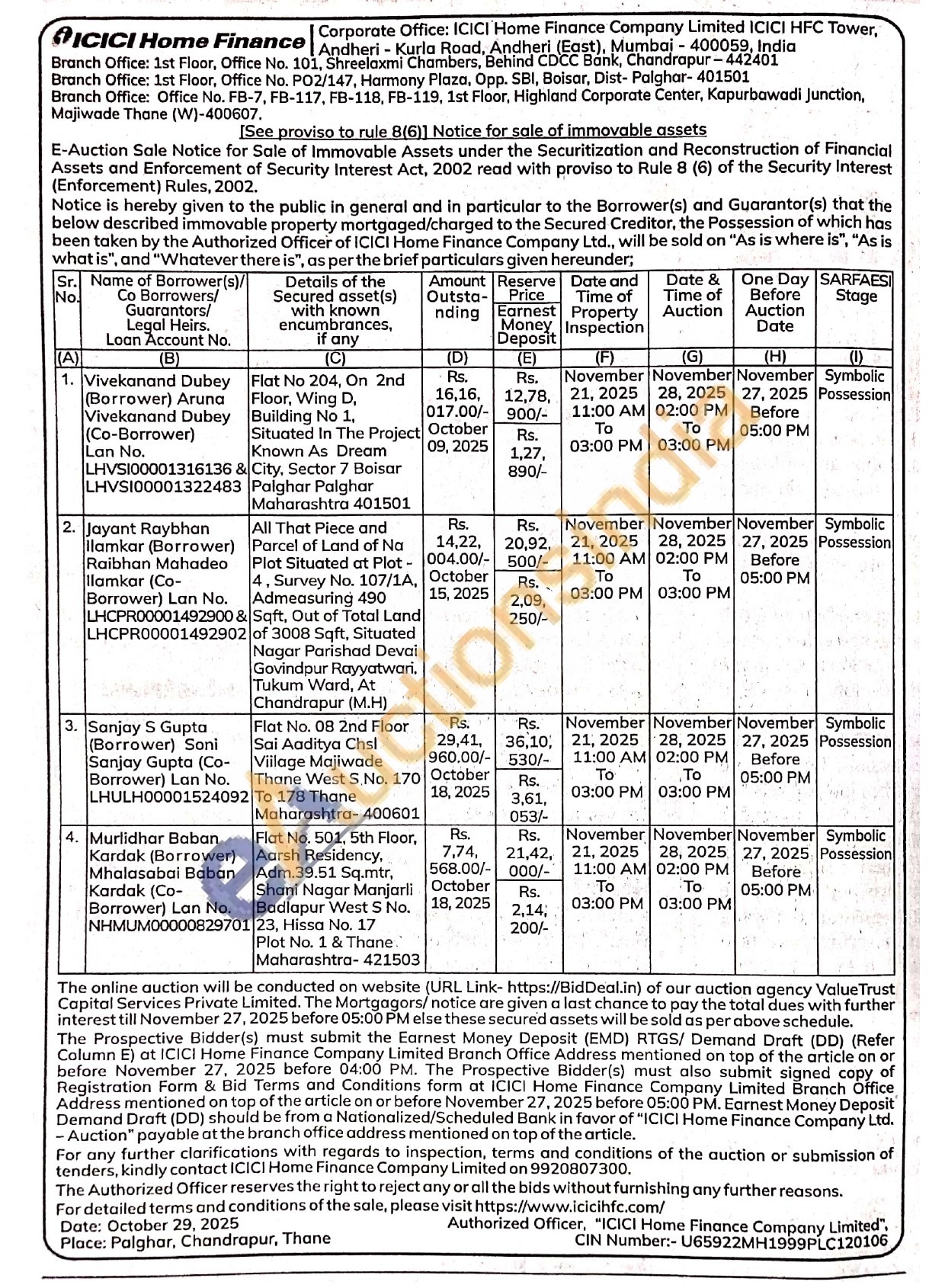 All That Piece and Parcel of Land of Na Plot Situated at Plot -4, Survey No. 107/1A, Admeasuring 490 & Sqft, Out of Total Land of 3008 Sqft, Situated Nagar Parishad Devai Govindpur Rayyatwari, Tukum Ward, At Chandrapur (M.H)