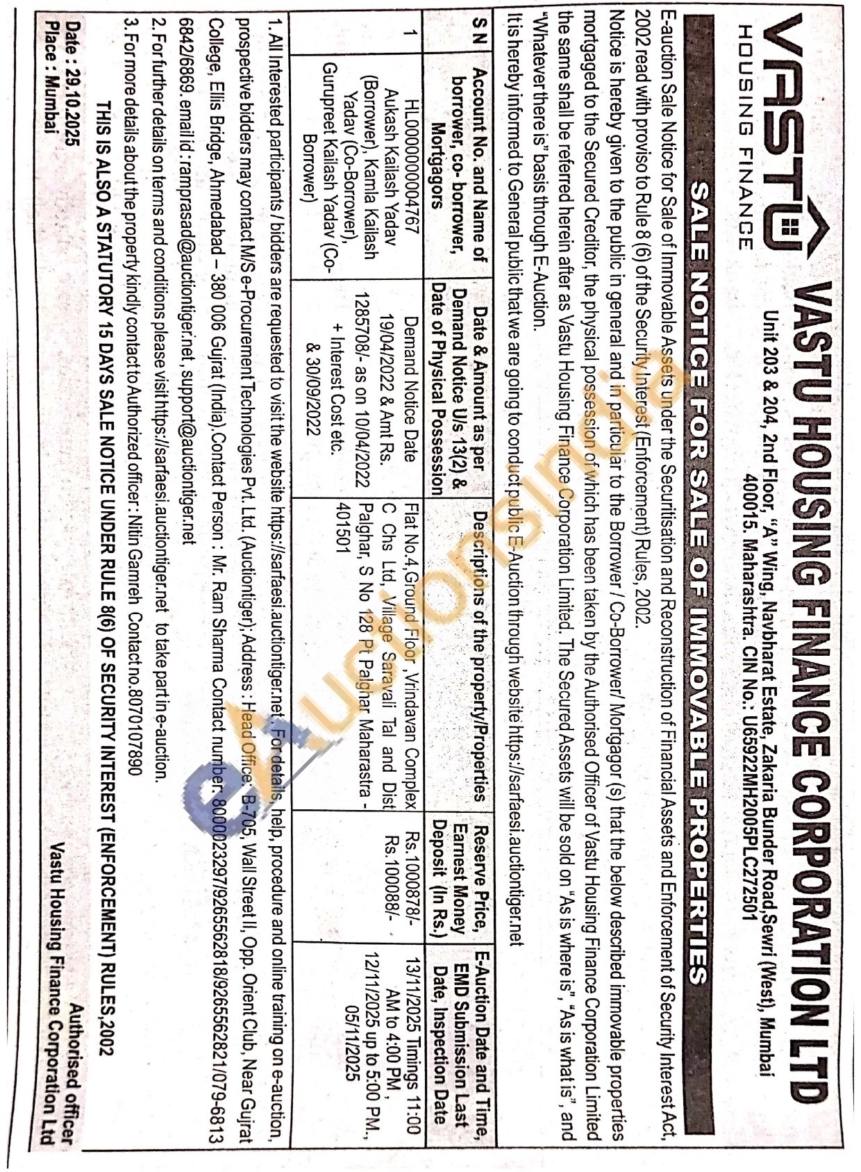 Flat No.4, Ground Floor, Vrindavan Complex C Chs Ltd, Village Saravali Tal and Dist Palghar, S No 128 Pt Palghar Maharastra -401501