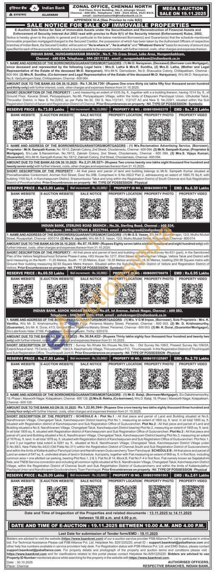 2) All that piece and parcel of land and building belongs to Mr.N. Sampath Kumar situated at Poonathamallee Contonment. Amman Koil Street, Door No.35B, Comprised in S.No.392/2 Part 2. admeasuring an extent of 1660.75 Sq.ft. with building 1100 Sq.ft. in Kancheepuram District, Sriperumbudur Taluk and lying within the Registration District of South Chennal and Sub Registration District of Poonthamallee. Prior Encumbrances on property: Nil. TYPE OF POSSESSION: Physical