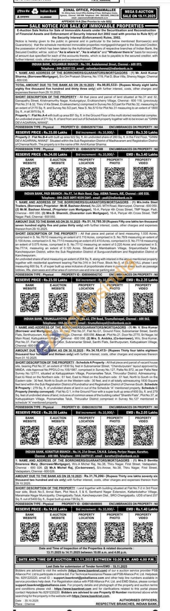 All that piece and parcel of land measuring 1.035 Acres. comprised in S. No. 76/10 measuring an extent of 0.110 Acres, comprised in S. No. 76/9 measuring an extent of 0.100 Acres, comprised in S. No. 77/13 measuring an extent of 0.410 Acres, comprised in S. No.77/18 measuring an extent of 0.075 Acres, comprised in S. No.77/12 measuring an extent of 0.220 Acres and comprised in S No.77/14, measuring an extent of 0.120 Acres. Situated at Mambakkam Village, Sriperumbadur Taluk Kancheepuram District, within the Sub Registration District of Sunguvarchattiram and Registration District of Kancheepuram. An undivided share of land measuring an extent of 204 Sq. ft. along with interest in the above mentioned property together with residential apartment bearing Flat No.316 in 3rd Floor, Block No.5, of GLOBEVILL phase i and measuring 600 Sq. ft. of super built up area inclusive of proportionate share in common areas such as passage lobbies, lifts, staircases and other area of common use and one car parking slot