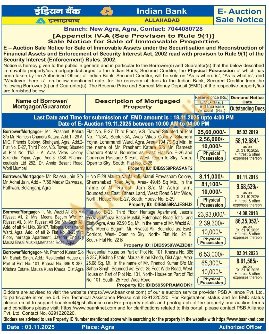 Residential House on Part of Plot No. 101, Khasra No. 386 & 387, Krishna Estate, Mauza Kuan Kheda, Dist Agra, Area-25.08 Sq. Mt., in the name of Mr. Pramod Kumar S/o Mr. Sahab Singh, Bounded as: East-25 Feet Wide Road, West-House on Part of Plot No. 101, North- House on Part of Plot No. 101, South-25 Feet Wide Road