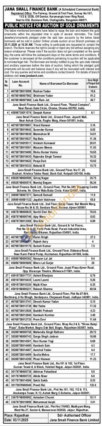 Jana Small Finance Bank Gold Auctions Auction in Noida