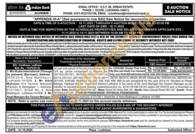 All Part and parcel of the plot measuring 3/4 sq yards comprised in khasra No. 25//15/2,25/16/1, 25/25/2, 26//21/1, 31/1/2 25//14, 25//15/1, 25//16/2,25//17,26//10, 26/11, 26/20,26//21/2, 25/24, 25/25, Khewat No. 378/343 min, 380/343 min 381/344, 428/385, Khatauni no. 436, 438, 439, 488, 489 as per jamabandi for the year 2014-15. Situated at Village Mangat. Hadbast No. 64, Tehsil and District Ludhiana in the name of Mr. Amit Mahajan Sio Tarsem Mahajan as per transfer of ownership deed bearing vasika/document no. 2018-19/106/1/6143 dated 29/10/2018 and is bounded as under East: Swaranjit Kaur 204-00", West: Road 30' Wide 206-00', North: Main Sasrali Road 253-00, South: Road . 3, Mr. 30° Wide 247-00